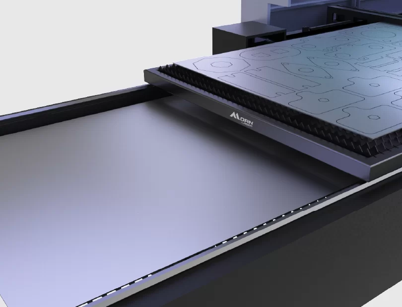 La découpe suivie du déchargement prend un temps et un effort précieux, automatisez ce processus avec le découpeur laser pour tôles à table d’échange de Morn Laser et devenez plus efficace ! Avec un simple changement instantané, vous maintiendrez votre ligne de production sans interruption.