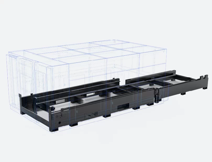 L’échange de table de travail permet de maintenir la production sans arrêt de la machine. Il permet un chargement et un déchargement rapides, améliorant ainsi considérablement l’efficacité du traitement.